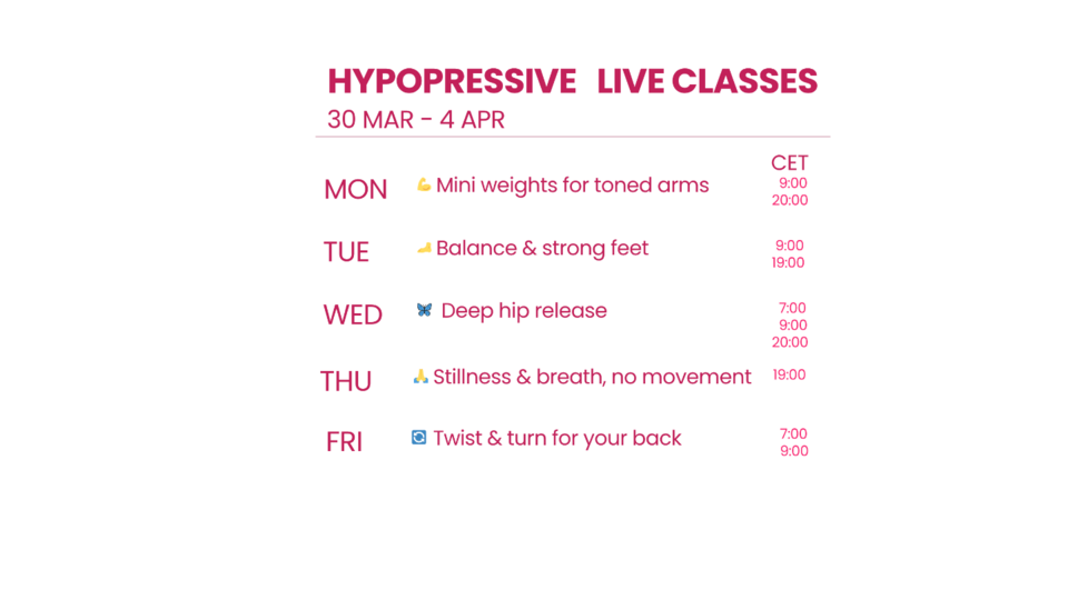 👉 Important: To join these group classes, you first need to learn the hypopressive breathing technique in a starter class (free) or in a free video class.